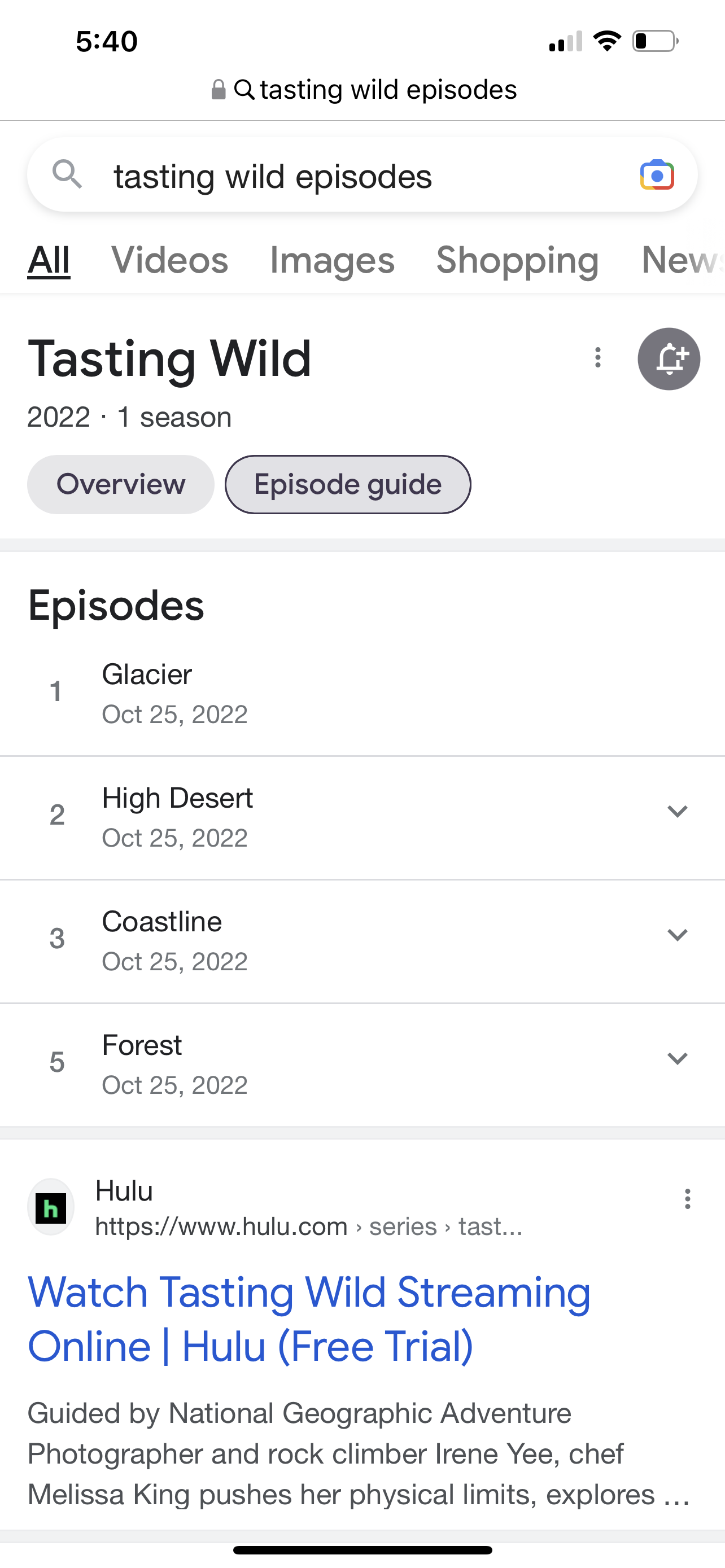 Here’s the info for Tasting Wild on Hulu