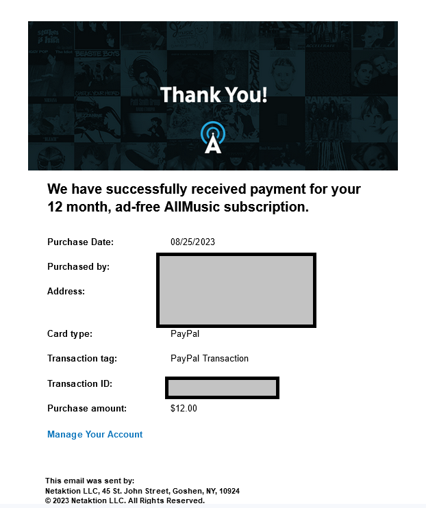 Did you get a notification from AllMusic or your credit card company/PayPal that this transaction went through?