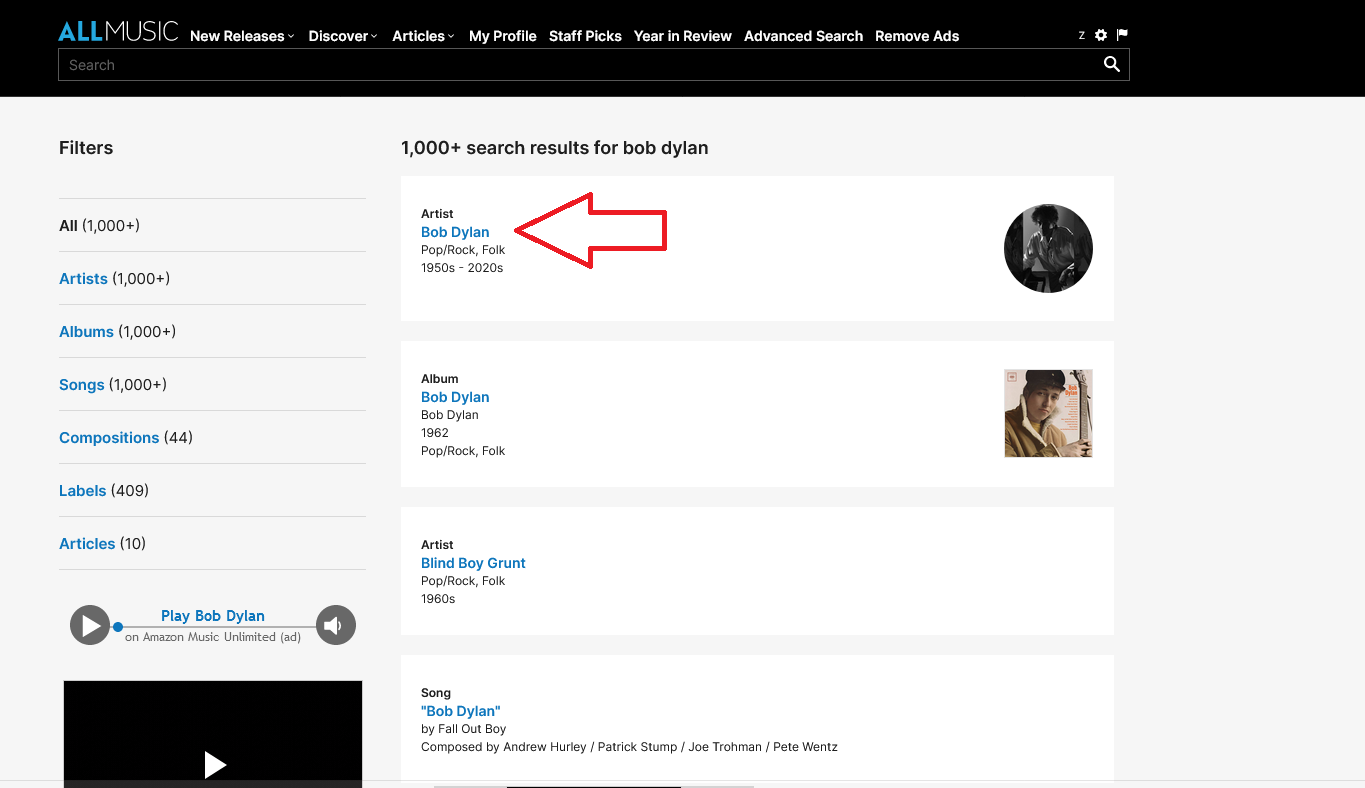 I signed up for an account on AllMusic.com, performed a search, saw a link to the artist I was interested in and was redirected to Amazon Music. This is just sick. This site used to be helpful. Now it is crap.