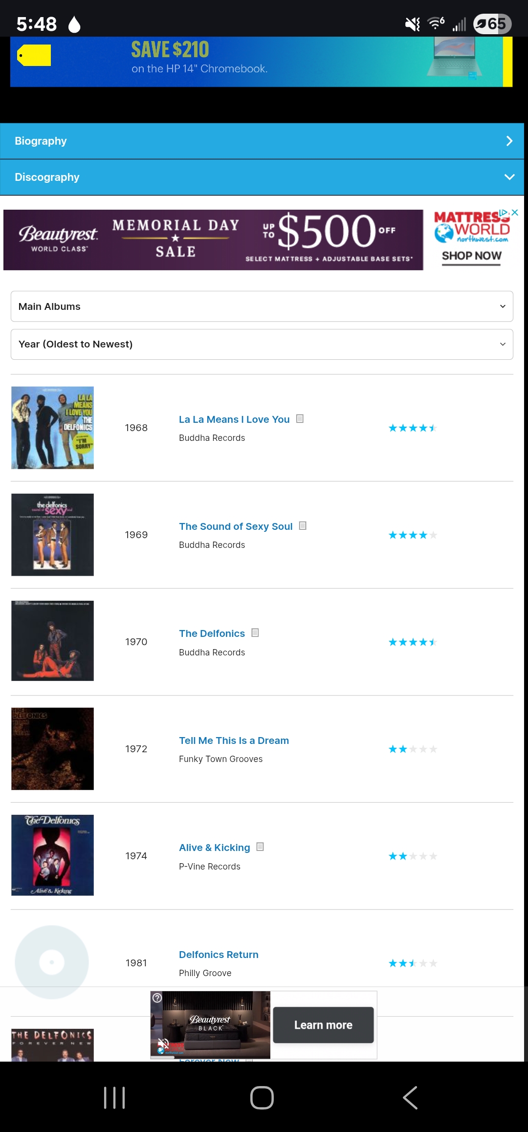 I'm using a Samsung galaxy s23 ultra. If I toggle desktop mode on or off the screen looks the same. My main issue is that user ratings no longer display and that's the main way I sort discographies. Again it displays fine in Firefox and was displaying fine in chrome until about 8p last night.