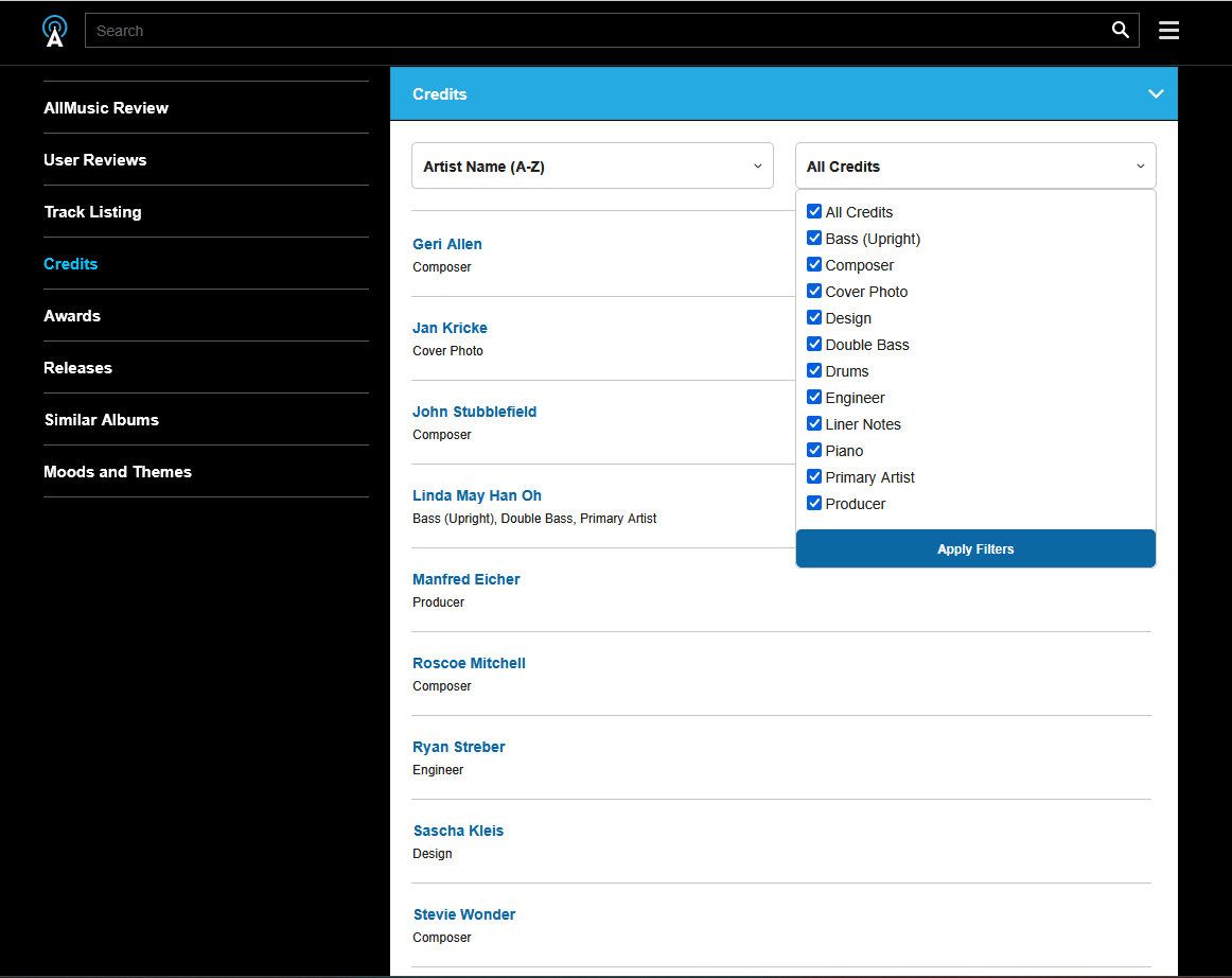 I couldn't and still can't believe it: Have you really erased one of the main advantages of your website compared for instance to Spotify? Telling in the credits who, which musician is playing which instrument? Now I mostly find them in the credits only called "primary artist"! Just seen in "Defiant Life", the duo album of Vijay Iyer and Wadada Leo Smith: no info that they play keyboards (Iyer) and trumpet (Smith).