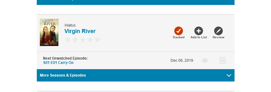 I'm tracking Virgin River, but it is not showing on my list of tracked shows. I tried adding to different lists and no change. Also tried "untrack" and track again, nothing. I tracked another show, and that one is showing. The issue seems to be with "Virgin River". Any clue why?