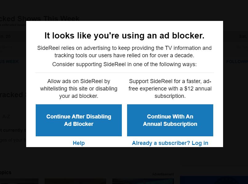 SideReel relies on advertising to keep providing the TV information and tracking tools our users have relied on for over a decade.